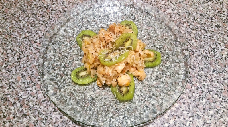 Risotto con Kiwi, Porri e Bocconcini di Pollo