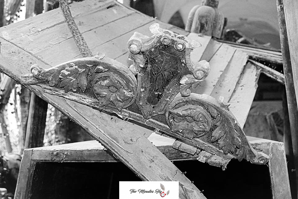 Due enormi carri funebri vi appaiono davanti non appena vi accingete a visitare i portici che circumnavigano quel groviglio di rovi ed erbacce, che una volta era il vecchio parco. Antiche lapidi sono sparse qui e lì, quasi come se vi trovaste all’interno di un grande “magazzino dei decessi“. Nell’antica chiesa, la cui bellezza è ormai stata oscurata da centinaia di elementi del ponteggio, vi si pongono davanti due statue logore e angoscianti: una delle due è senza testa, l’altra ha assunto un’espressione inquietante a causa dell’usura provocatale dallo scorrere del tempo.